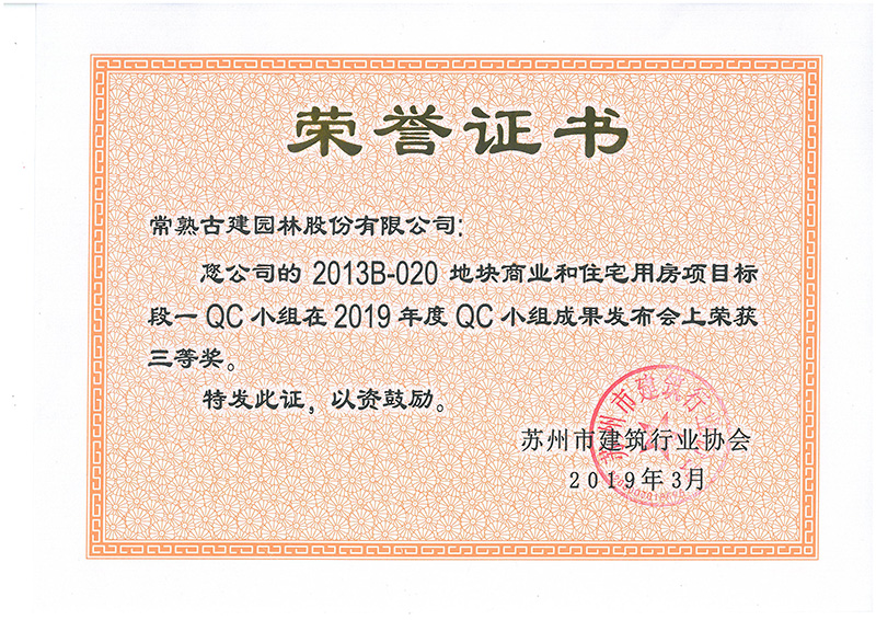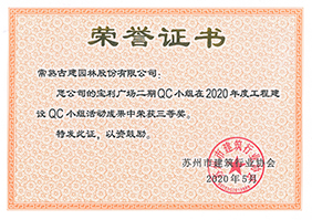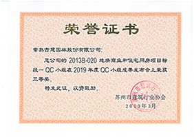 2013B-020地塊商業(yè)和住宅用房項目標(biāo)段一榮獲QC成果三等獎