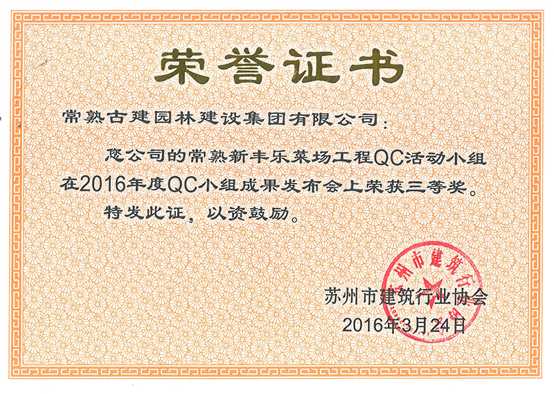 常熟新豐樂菜場工程榮獲QC成果三等獎