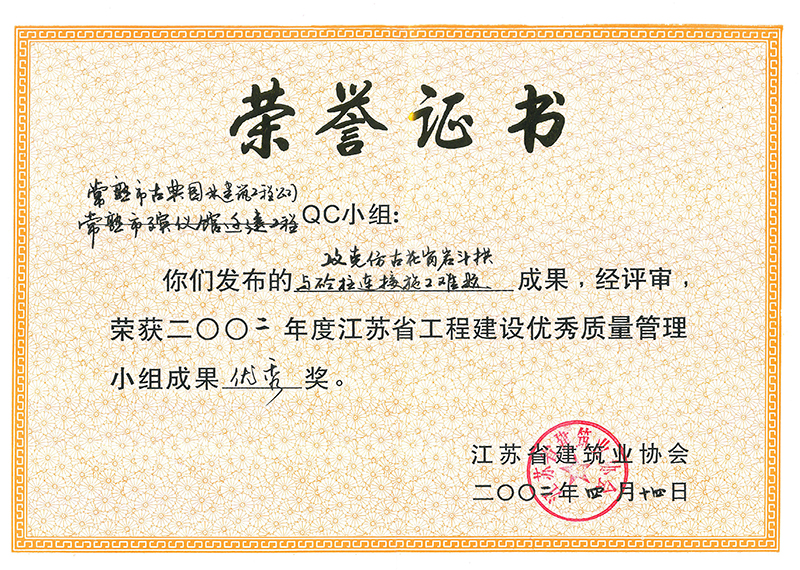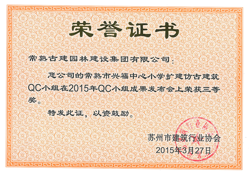 常熟市興福中心小學(xué)擴建仿古建筑榮獲QC成果三等獎