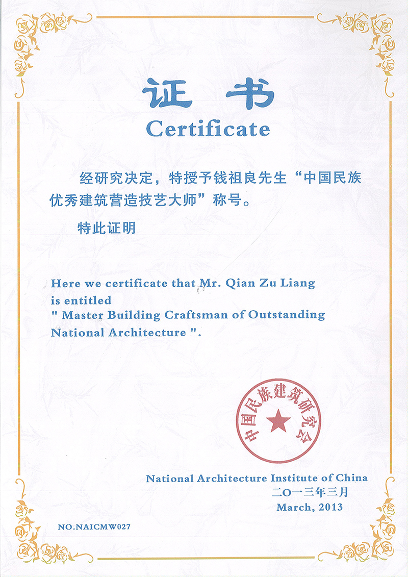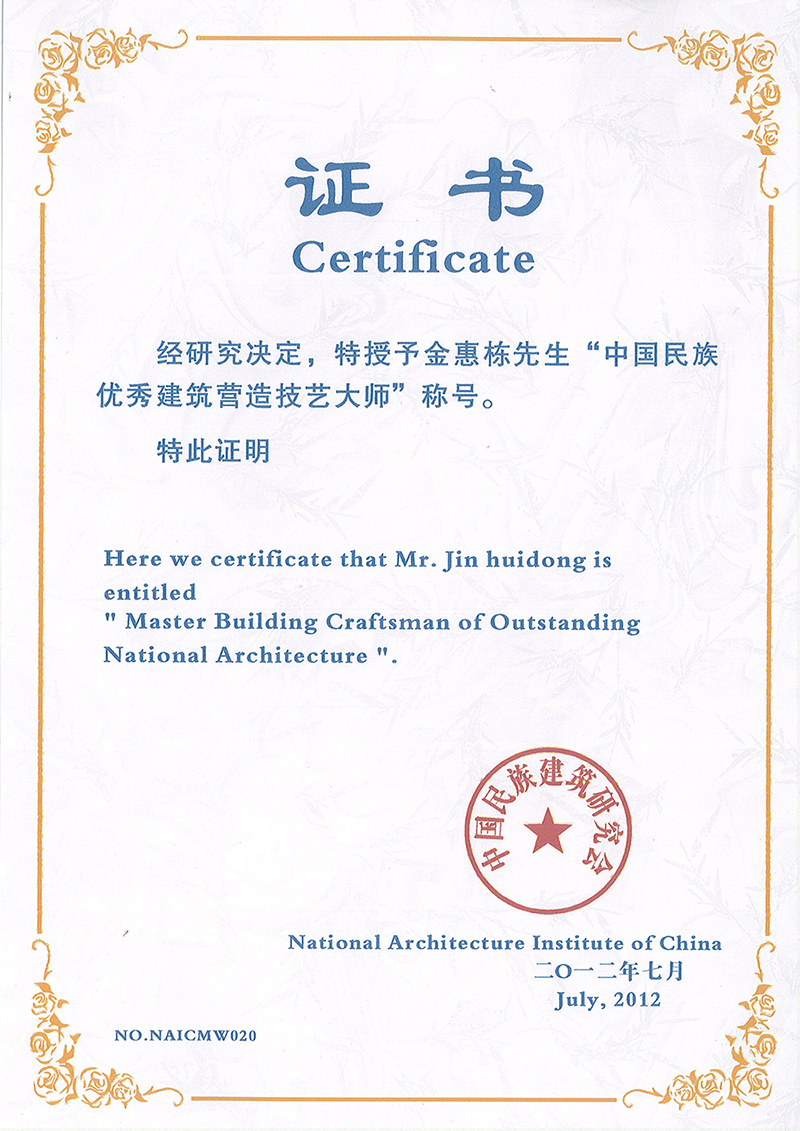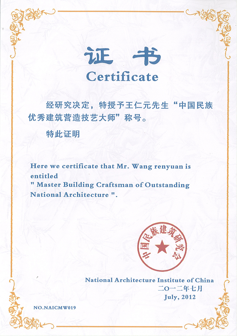 中國(guó)民族優(yōu)秀建筑營(yíng)造技藝大師