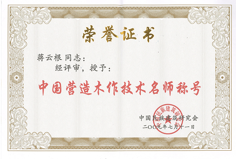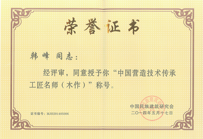 中國(guó)營(yíng)造技術(shù)人物傳承獎(jiǎng)