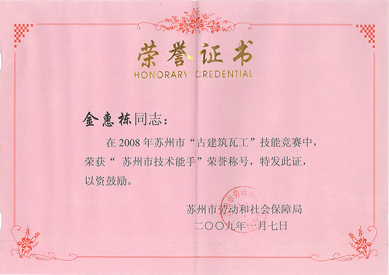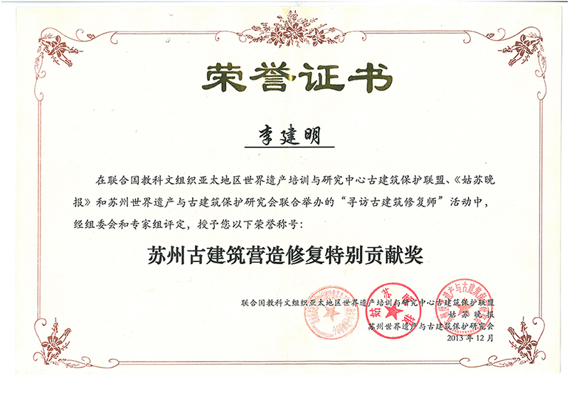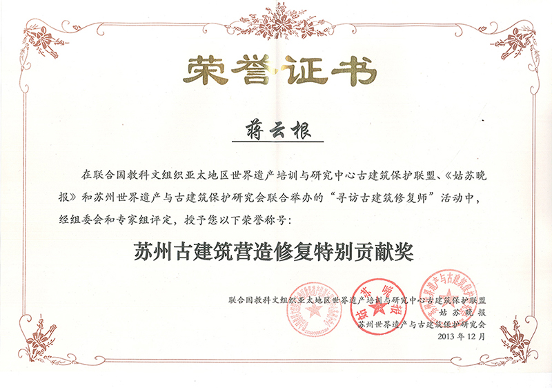 蘇州古建筑營(yíng)造修復(fù)特別貢獻(xiàn)獎(jiǎng)