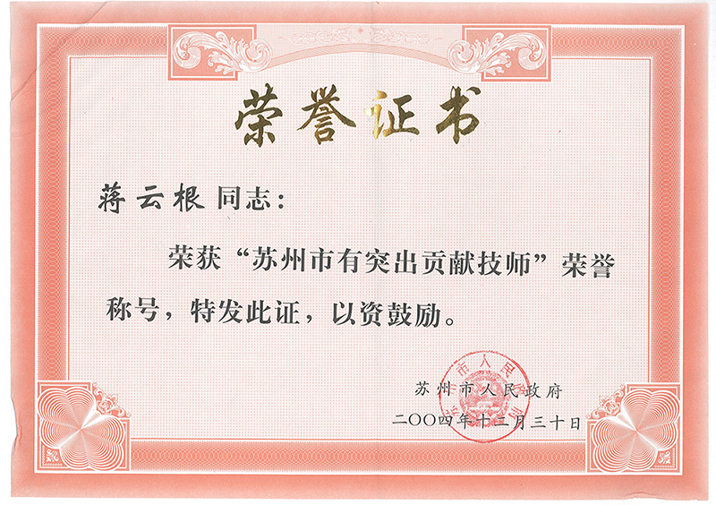 蘇州市有突出貢獻(xiàn)技師