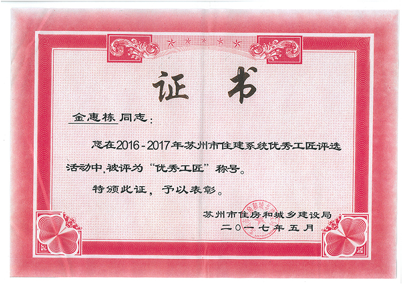 蘇州市優(yōu)秀工匠