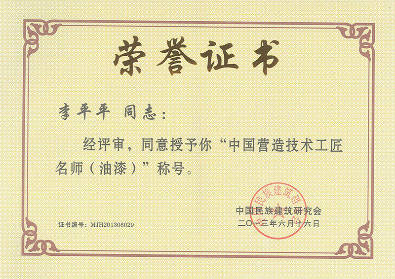 中國(guó)營(yíng)造技術(shù)工匠名師(油漆)